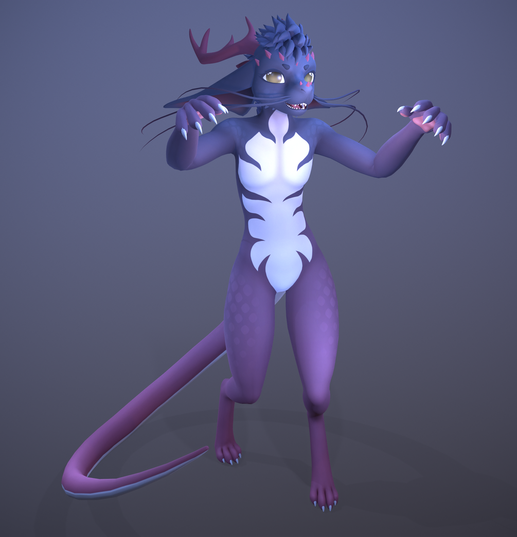 A dragon avatar created for use in VRChat (FBT & AV 3.0) with dynamic bones, colliders and av3.0 all pre-set up!